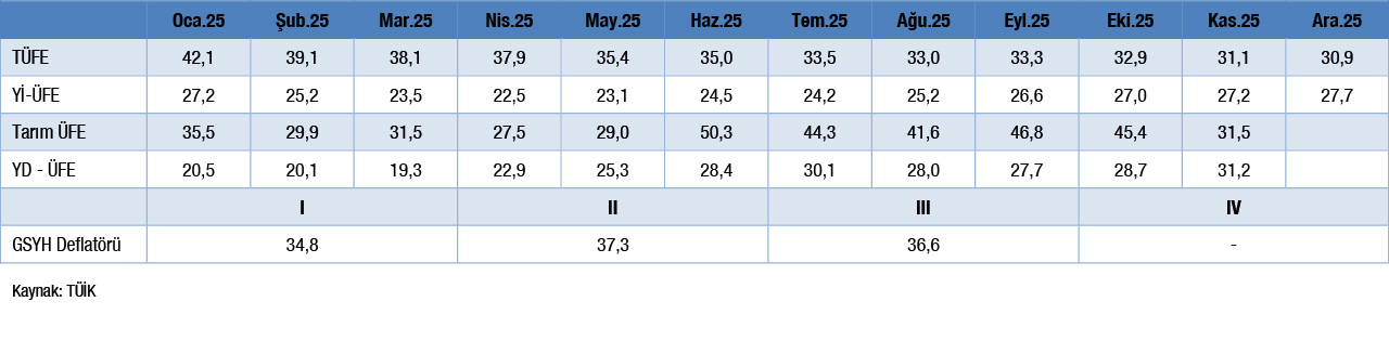 2025 yılı Aralık ayı Tüketici ve Üretici Fiyat Gelişmeleri açıklandı