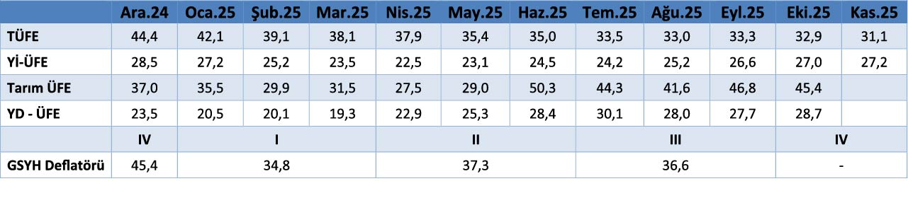 2025 yılı Kasım ayı Tüketici ve Üretici Fiyat Gelişmeleri açıklandı