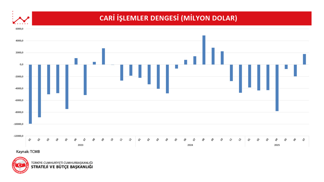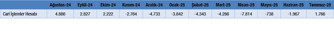 • 2025 yılı Temmuz ayında cari işlemler dengesi 1.766 milyon dolar fazla vermiştir.