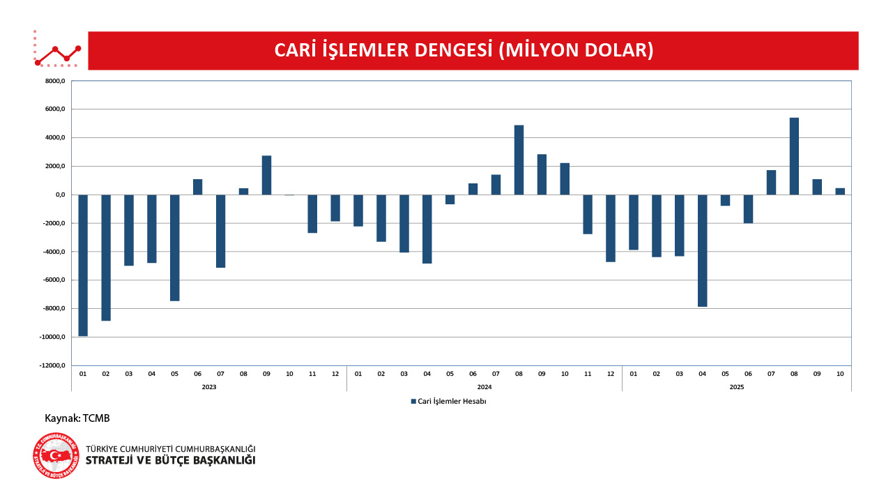 - 2025 yılı Ekim ayında cari işlemler dengesi 457 milyon dolar fazla vermiştir.