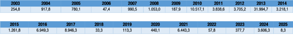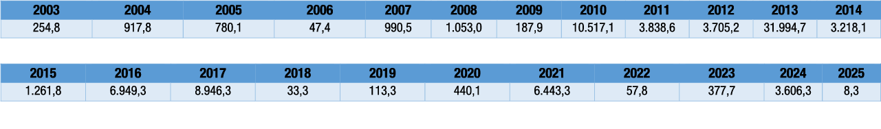 Yatırım Tutarlarının Yıllara Göre Dağılımı (Milyon ABD Doları, 2025 Yılı Eylül Ayı Fiyatlarıyla)